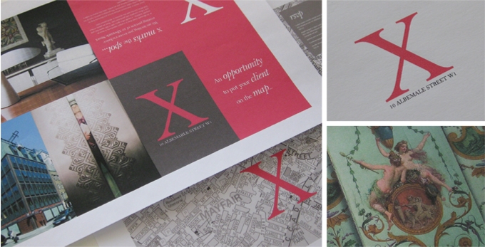 An investment company, owned by Paul Smith, required marketing for their acquisition of 5 floors of luxury office space and a penthouse suite situated above the Paul Smith furniture and curiosity shop in Mayfair. The tone of voice of the marketing material had to reflect this unique space with style and character. The name and identity is based on the roman numeral for ‘10’ and also represents the opportunity for businesses to make a unique corporate statement and put their ‘X’ on the map. The concept for the brochure is the ‘finishing touch’, a theme which combines the attention to detail at 10 Albemarle Street and also how working in such a prestigious location in the heart of Mayfair’s art and fashion districts can simply be the jewel in the crown. The first piece of marketing released was the agents particulars, and within a week, two of the floors were under offer.